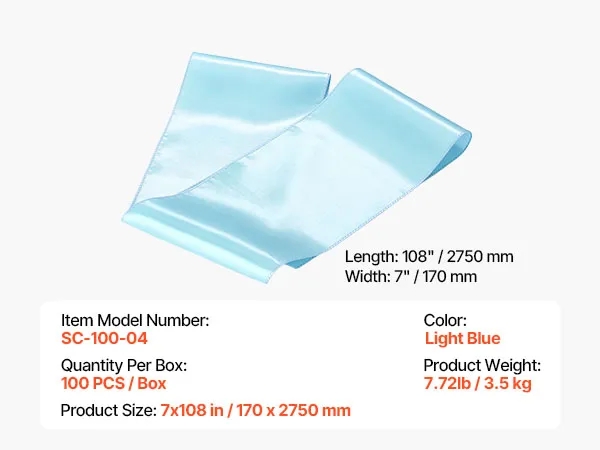 Universele pasvorm: elke stoelband is 275 x 17 cm groot en past op de meeste banket-, klap- en Chiavaristoelen. De verpakking van 100 stuks biedt een uitstekende prijs-kwaliteitverhouding voor bruiloften, recepties of feesten.