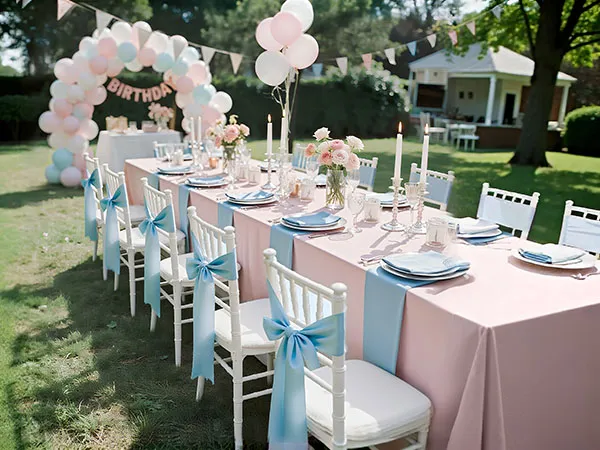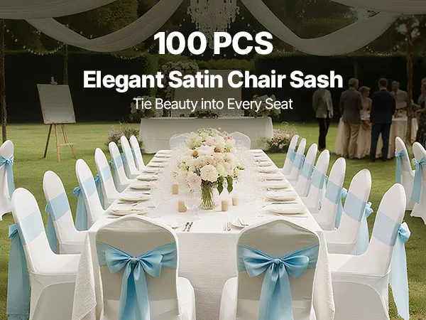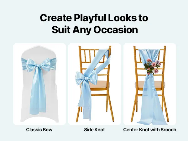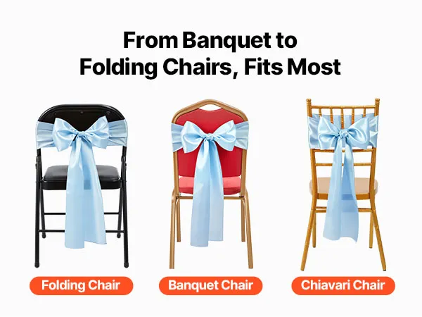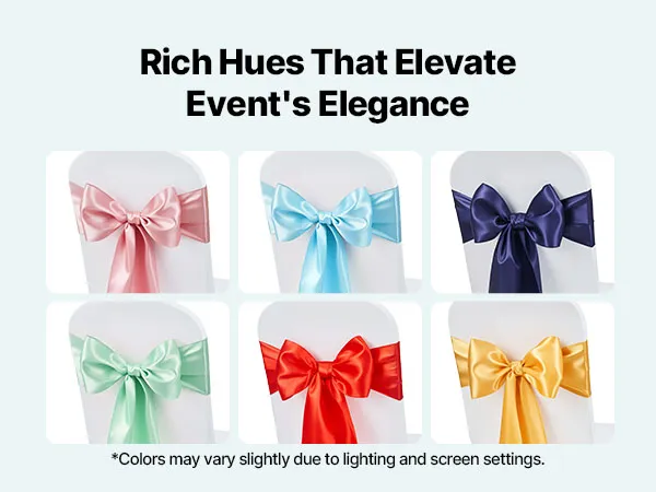 Luxe satijn: de stoelbanden zijn gemaakt van satijn met een hoge dichtheid, zijdezacht en kreukvrij, met rijke, levendige kleuren voor luxe bruiloft- en feestdecoraties.