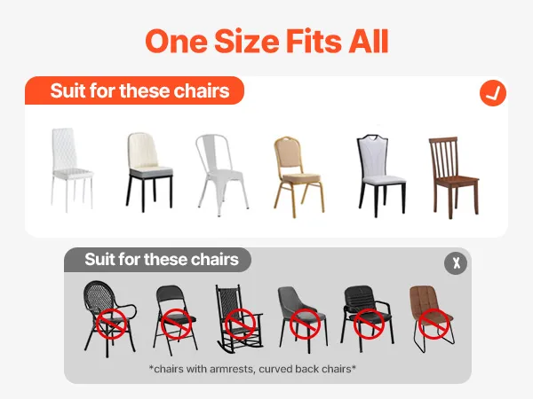 Geschikte stoelen en gelegenheden: Deze stoelhoezen zijn ideaal voor stoelen zonder armleuningen, maar niet geschikt voor klapstoelen. Ze kunnen worden gebruikt ter decoratie van privé- en zakelijke evenementen, zoals verjaardagen, bruiloften, zakelijke bijeenkomsten, banketten, vieringen, enz.