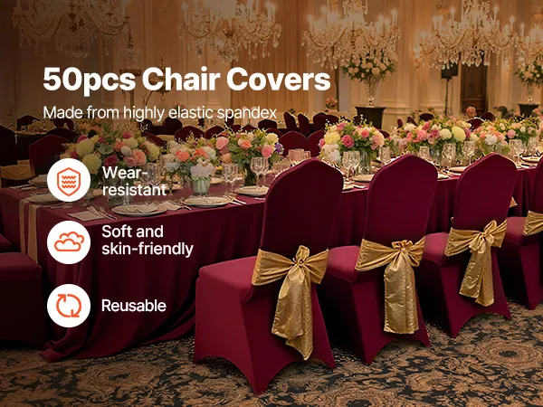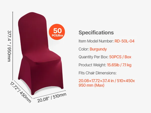 VEVOR stoelhoezen, 50 stuks, wasbare en afneembare stoelhoezen van polyester-spandex voor bruiloften, diners, banketten en restaurants, geschikt voor stoelen (51 x 45 x 95 cm), bordeauxrood