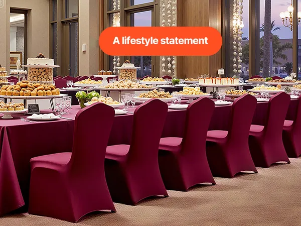Deze elegante stoelhoezenset, gemaakt van hoogwaardige stretch spandexstof, versterkt de uniforme uitstraling van uw stoelen. Ideaal voor bruiloften, diploma-uitreikingen, verjaardagen en andere speciale gelegenheden, voegt het een vleugje elegantie en stijl toe aan elk evenement.