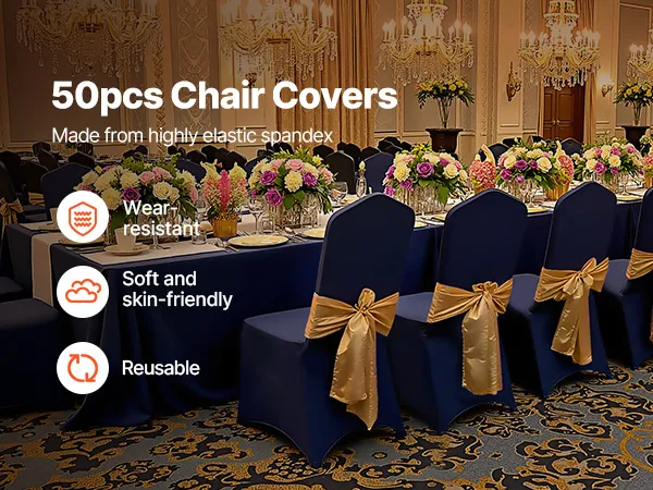 VEVOR stoelhoezen, 50 stuks, wasbare en afneembare stoelhoezen van polyester-spandex voor bruiloften, diners, banketten en restaurants, geschikt voor stoelen (51 x 45 x 95 cm), marineblauw