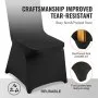 De VEVOR Stretch Spandex Folding Chair Covers zijn verkrijgbaar in een klassieke zwarte kleur en bieden een tijdloze en verfijnde look. Zwart staat synoniem voor kwaliteit, elegantie en veelzijdigheid, waardoor het een ideale kleur is voor verschillende evenementthema's en -omgevingen. Of u nu een formeel gala of een intiem feest organiseert, de zwarte stoelhoezen vullen elk decor aan zonder het algehele ontwerp te overweldigen. Naast hun stijlvolle uiterlijk is de zwarte stof praktisch, omdat het vuil en vlekken verbergt, waardoor het een slimme keuze is voor evenementen met veel verkeer. Deze hoezen bieden zowel functionaliteit als schoonheid, waardoor uw evenement er van begin tot eind gepolijst uitziet.