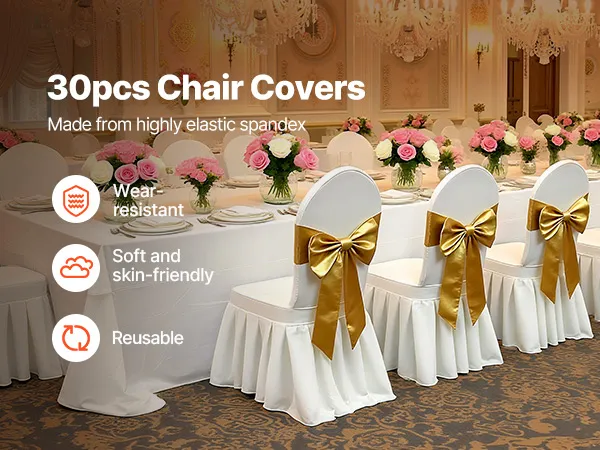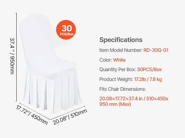 VEVOR 30 Pcs White Chair Covers, Polyester Spandex Chair Cover, Stretch Slipcovers for Wedding Party Dining Banquet Flat-Front Chair Covers, Fits Chair Measures up to 20.08 x 17.72 x 37.4 inch