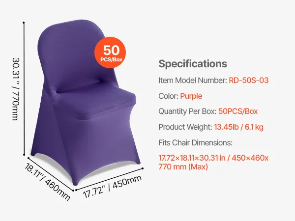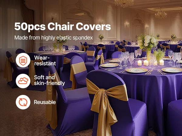 VEVOR stoelhoezen, stretch stoelhoezen, 50 stuks, wasbare en afneembare stoelhoezen van polyester-spandex voor bruiloften en diners, geschikt voor klapstoelen (45 x 46 x 77 cm), paars