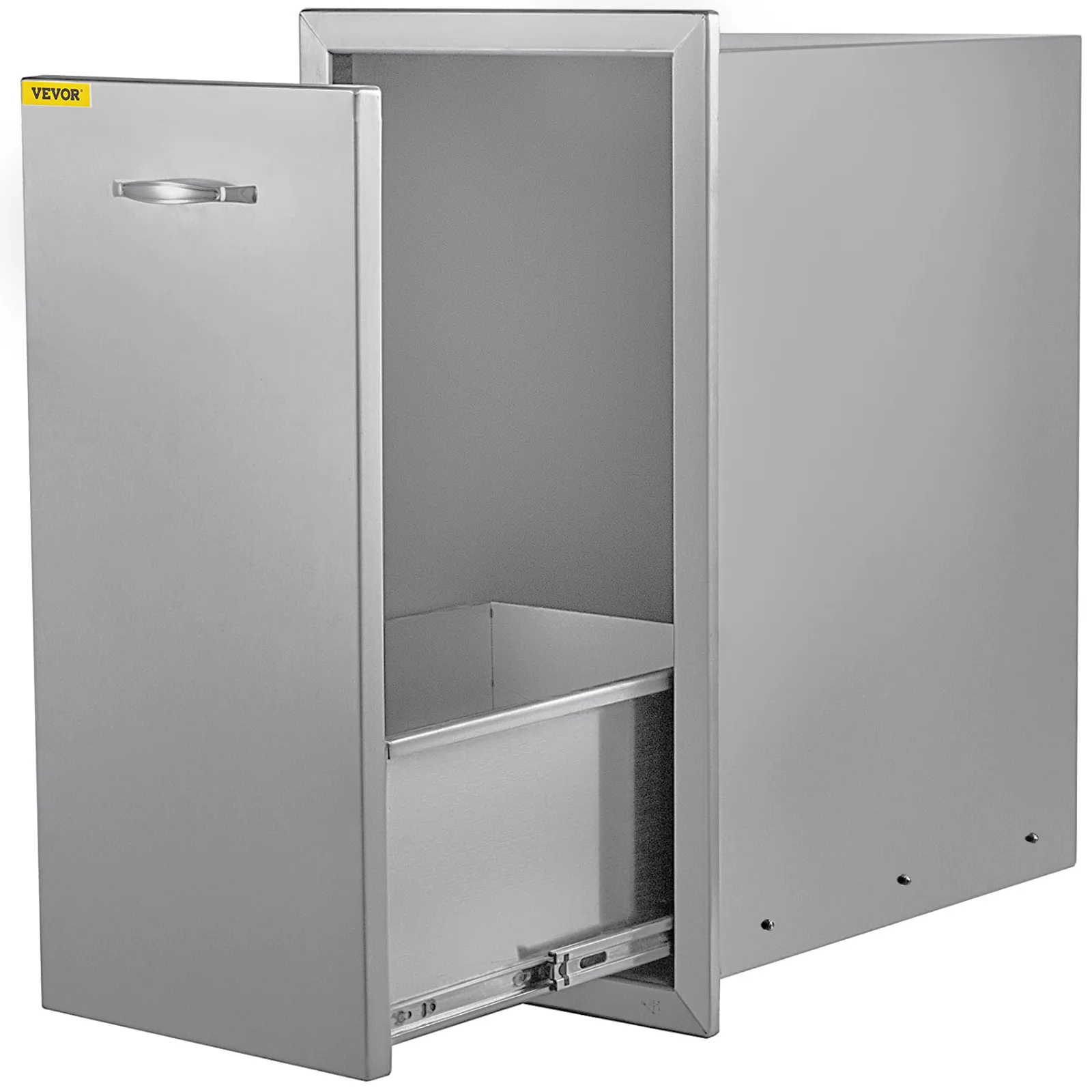 Als een keukenafvallade goed is ontworpen, verbetert dit de visuele aantrekkingskracht van de ruimte. Bovendien verhoogt het de vastgoedwaarde en creëert het een uitnodigende omgeving. Hier is de VEVOR prullenbak voor buitenkeuken prachtig gemaakt. Het roestvrijstalen oppervlak past goed bij de omgeving en zorgt voor een prachtige uitstraling.