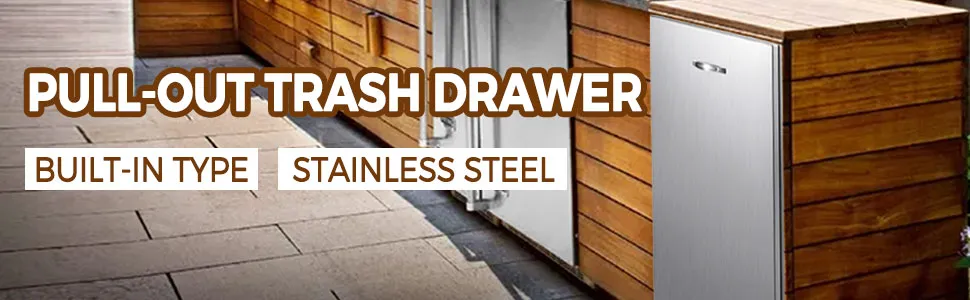 De lade glijdt moeiteloos, wat zorgt voor eenvoudig en efficiënt afvalbeheer. Door deze uittrekbare afvallade aan uw opstelling toe te voegen, kunt u uw keukenactiviteiten stroomlijnen en een vleugje professionaliteit toevoegen. De uittrekfunctie maakt het gemakkelijk om afval te bereiken en te beheren, waardoor uw buitenruimte schoon en opgeruimd blijft. Deze essentiële toevoeging tilt het gemak van de keuken naar een hoger niveau met minimale drukte.