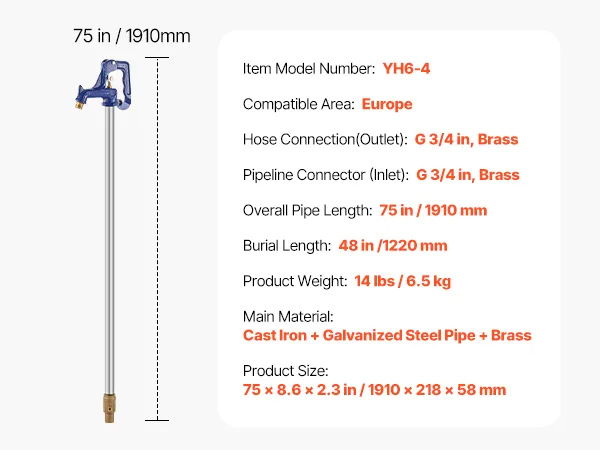 Onze vorstvrije tuinhydrant is gemaakt van gegalvaniseerde stalen buis, messing connector en een stevig gietijzeren lichaam, wat zorgt voor uitzonderlijke duurzaamheid en corrosiebestendigheid. Het is ontworpen om de buitenelementen te weerstaan.
