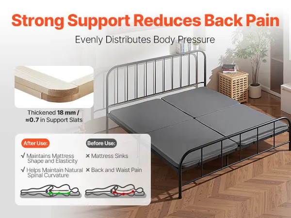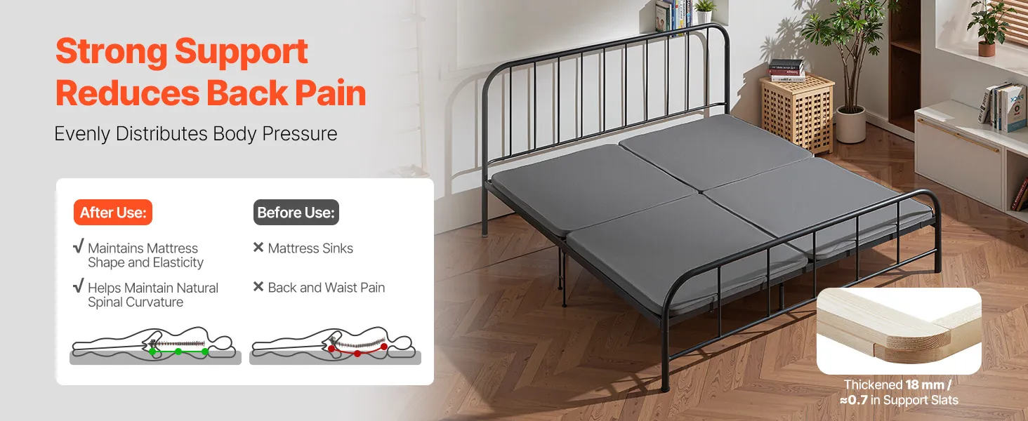 Robuuste houten constructie: Deze matrastopper is gemaakt van stevige, 38,1 mm (1,5 inch) dikke houten planken en biedt optimale stabiliteit. Geen breuken of slijtage – gewoon betrouwbare ondersteuning voor een comfortabel gevoel.