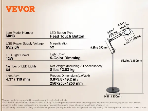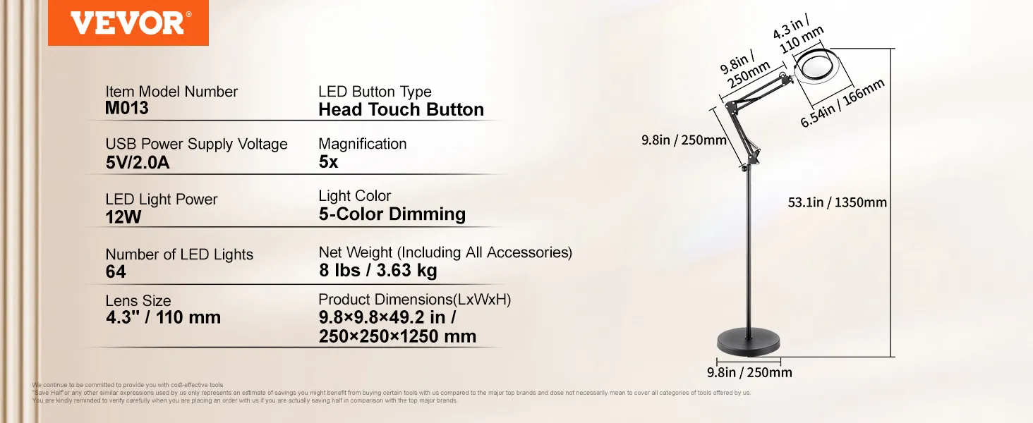 The non-slip large clamp and reinforced base prevent sliding or tipping, ensuring effective and secure usage. The integrated LED light ring provides uniform, shadow-free illumination. You can easily adjust the angle of the magnifying floor lamp with light for all-around, dead-spot-free lighting.