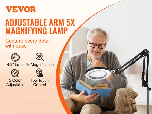 500% HD True Glass Lens: The distortion-free 4.3-inch high-definition lens allows you to see every detail clearly. Whether you're doing intricate work, reading small text, or conducting professional inspections, this magnifying floor lamp provides an exceptional visual experience.