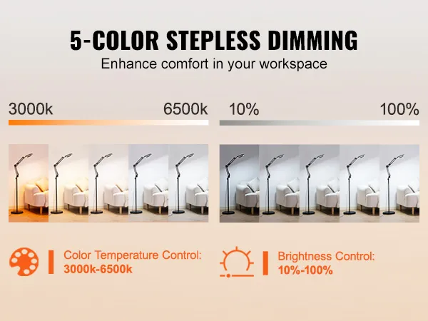 The support pole provides a 3-level height adjustment, allowing it to be used as a high or low-floor lamp or a desktop lamp. You can clamp the lamp to your desk to save valuable workspace. The high mode provides extensive lighting, while the low mode provides more focused, close-range illumination.
