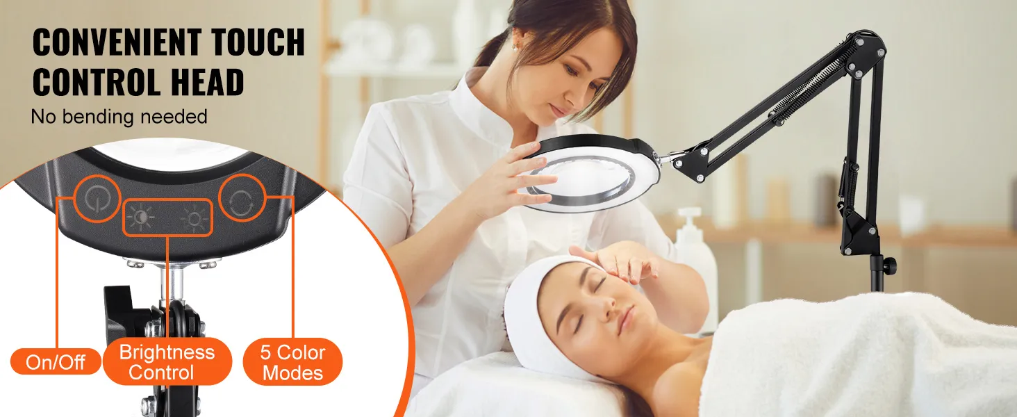 Top One-Touch Control: The upgraded top touch control makes setting your desired mode directly on the lamp head easy. There is no need to bend down or fumble for the power switch. All settings can be easily adjusted with a simple touch. This floor magnifying glass with light is especially suitable for the elderly and visually impaired users.