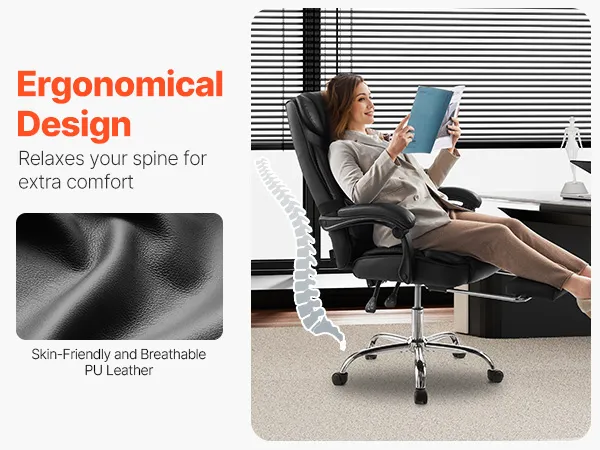 Ergonomic Comfort: The high back and ergonomic spine contour of this high back desk chair provide the support your back needs to stay relaxed throughout the day. The soft, high-density foam cushion combined with premium leather feels like sitting on a comfortable sofa, whether you're working or taking a break.
