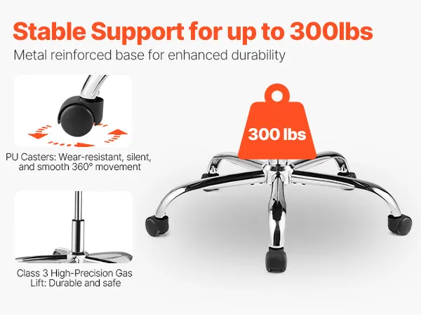 The heavy-duty 300 lbs / 136.08 kg reinforced metal base, combined with wear-resistant and silent wheels, ensures smooth 360° movement. This solid construction keeps your executive office chair stable, so you can focus on work without worrying about wobbling.