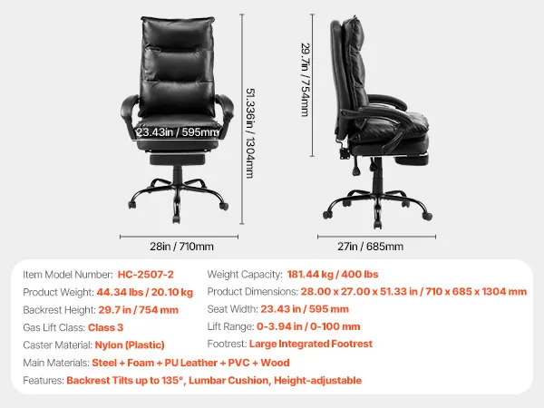 Deze directiestoel is gemaakt van huidvriendelijk, duurzaam leer en heeft een kussen van hoogwaardig schuim. Elk detail van de stoel is ontworpen voor maximaal comfort. Of u nu werkt of pauze neemt, u zult het verschil voelen.