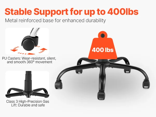 Soepel en stil bewegen: Dankzij de 360° roterende, slijtvaste en geluidsarme wielen kunt u in deze leren computerstoel soepel en stil over uw werkplek bewegen. De stevige metalen basis zorgt voor een stabiele zitervaring en helpt je om gefocust te blijven, ongeacht wat de dag voor je in petto heeft.