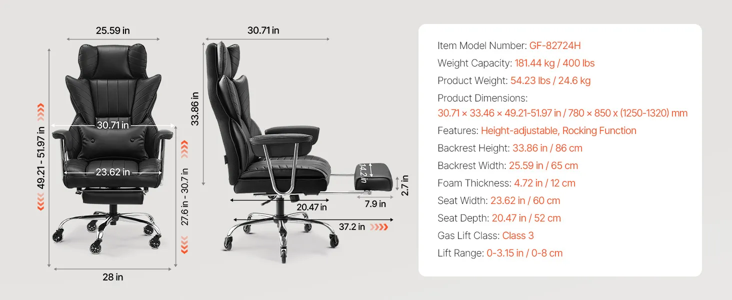 Eenvoudige hoogteverstelling: verstel de stoelhoogte eenvoudig met de nauwkeurige gasveer. Deze heeft een bereik van 0-3,15 inch (0-80 mm) en is geschikt voor mensen van verschillende lengtes. Of het nu voor familieleden thuis is of voor werknemers op kantoor, deze bureaustoel past zich aan uw behoeften aan