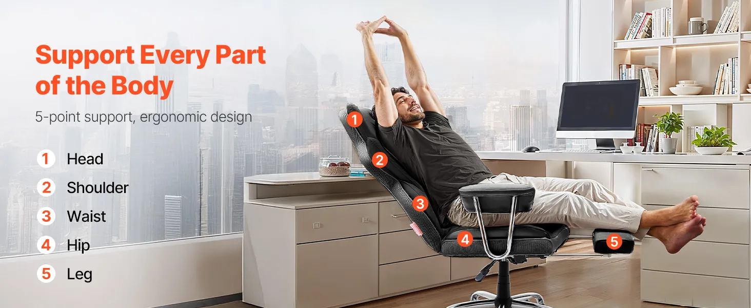 Van de verstevigde hoofdsteun tot het lendensteunkussen en het watervalvormige zitkussen: elk detail is doordacht om gerichte ondersteuning te bieden. Dit verlicht effectief de vermoeidheid die ontstaat door langdurig zitten en zorgt ervoor dat u een comfortabele en ontspannende ervaring heeft.