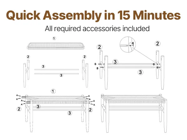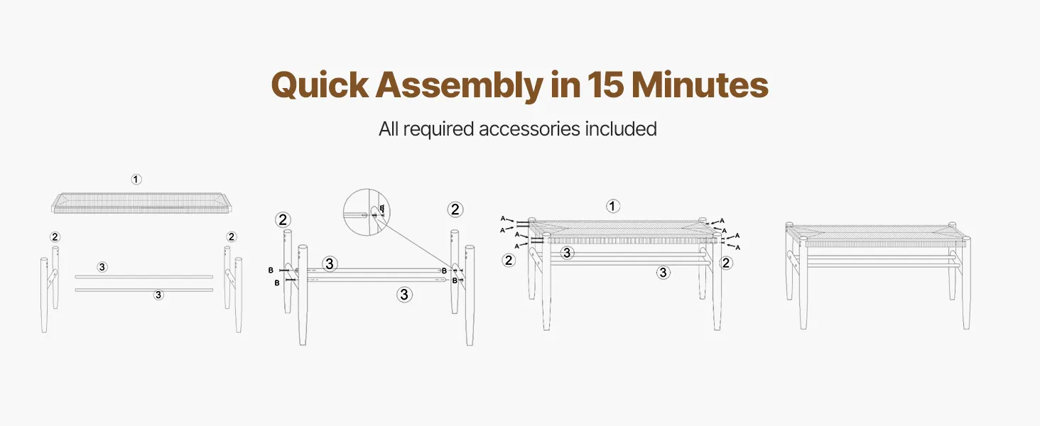 Easy Assembly: This wooden bench is easy to assemble, taking just 15 minutes! It comes with everything you need and simple instructions, so you can have it ready in no time. Get ready to enjoy your new favorite spot! (Note: Colors may vary slightly due to lighting and device settings.)