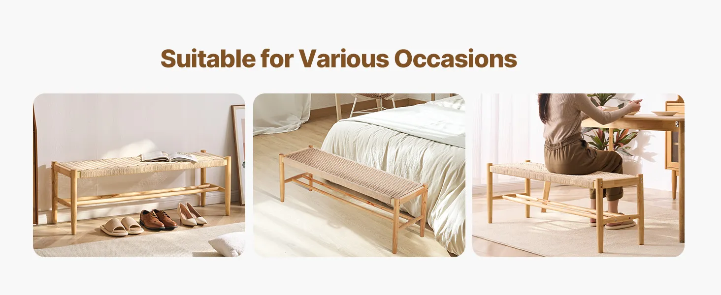 Ideal for Various Occasions: This wicker bench is beautiful in bedrooms, entryways, or dining areas. Use it as a shoe-changing station for guests, a cozy seat at the foot of your bed, or a dining bench for family gatherings. It's the fun, functional addition your home has been waiting for!