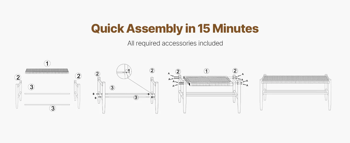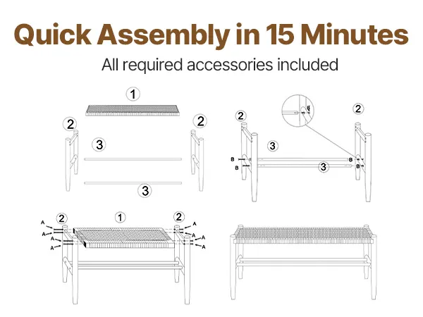 Easy Assembly: This wooden bench is easy to assemble, taking just 15 minutes! It comes with everything you need and simple instructions, so you can have it ready in no time. Get ready to enjoy your new favorite spot! (Note: Colors may vary slightly due to lighting and device settings.)
