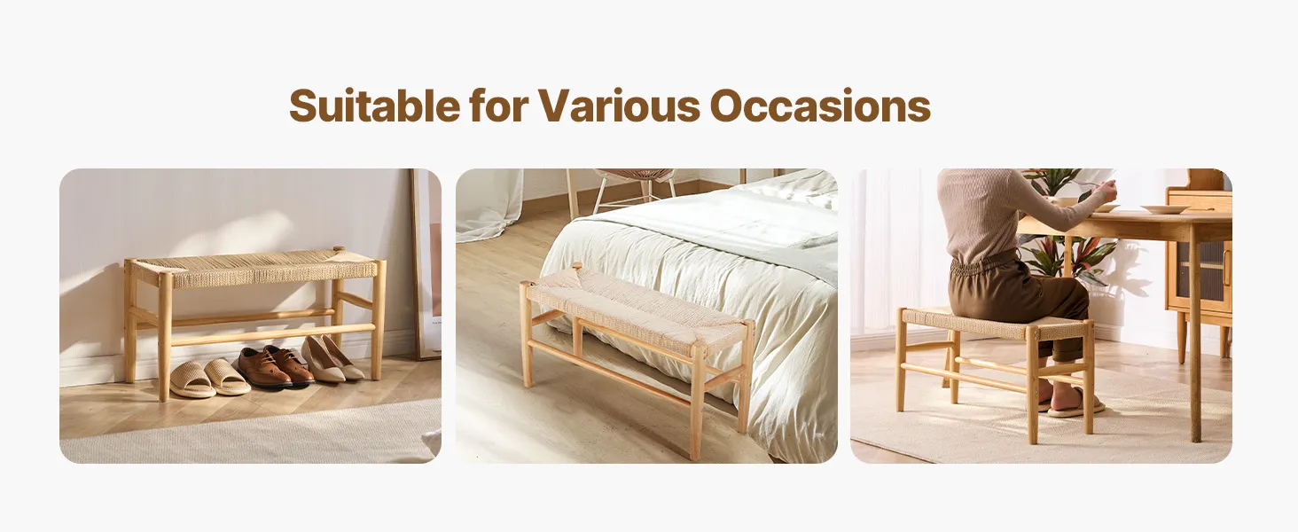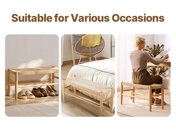 Ideal for Various Occasions: This wicker bench is beautiful in bedrooms, entryways, or dining areas. Use it as a shoe-changing station for guests, a cozy seat at the foot of your bed, or a dining bench for family gatherings. It's the fun, functional addition your home has been waiting for!
