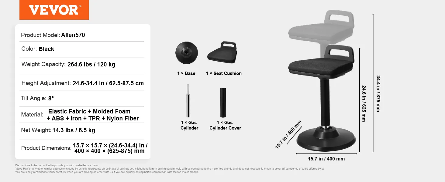 VEVOR Active Chair- Ideal for Etended Periods of Office Work