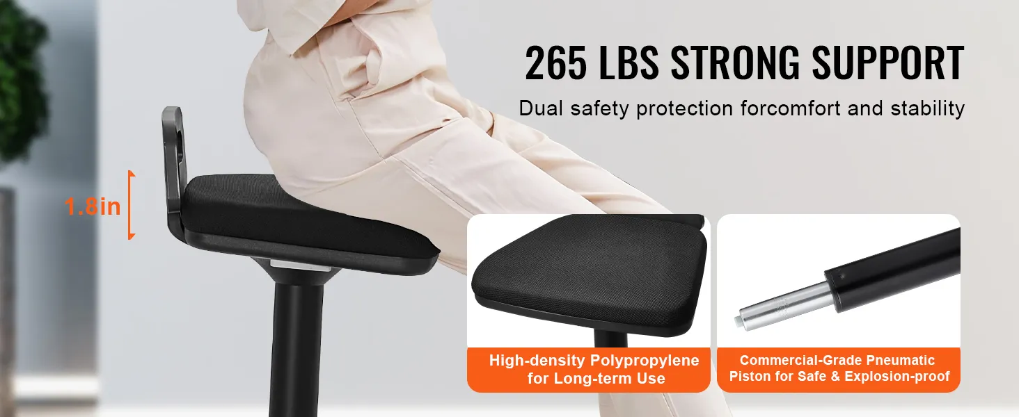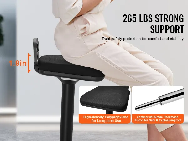 Supporting up to 264.6 lbs, it includes a high-density, resilient cushion that maintains shape even with prolonged use. The commercial-grade pneumatic piston ensures stability and safety, even with frequent rocking.