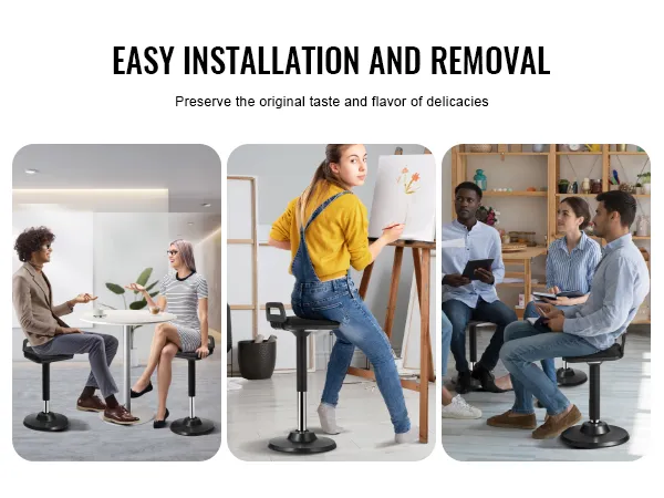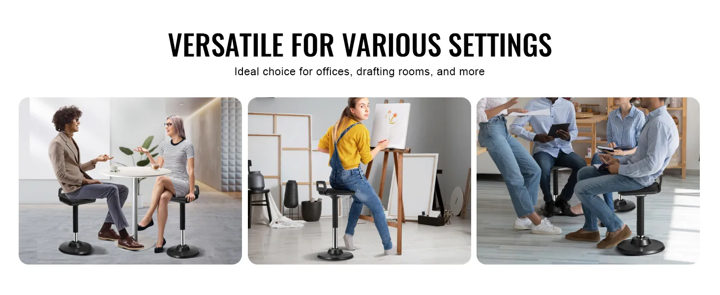 Our cahir is perfect for various settings, including offices, art studios, salons, kitchens, bars, receptions, exhibitions, and adjustable standing desks.