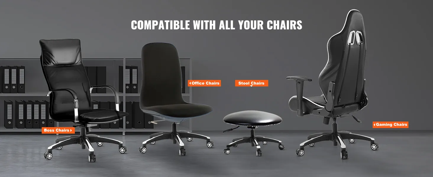 Smooth Rolling Casters: Enjoy effortless movement with our chair base's high-quality casters. Made from durable materials, they glide smoothly over carpets and hard floors, minimizing noise and making it easy to roll around the office. Whether grabbing files or chatting with colleagues, you'll move quietly and efficiently.
