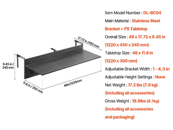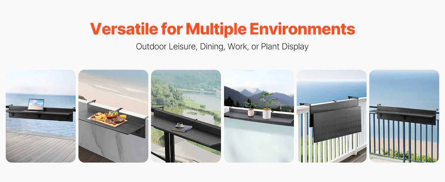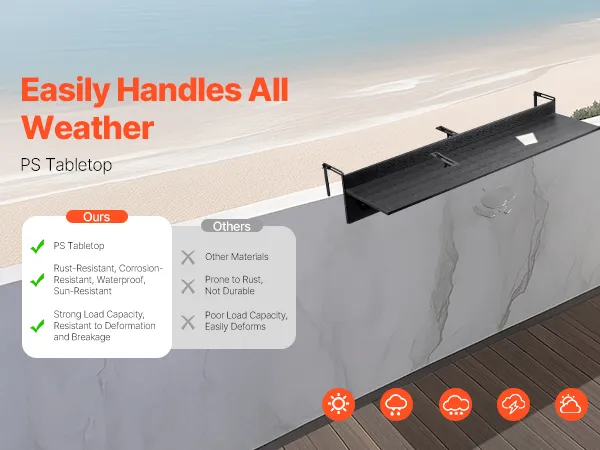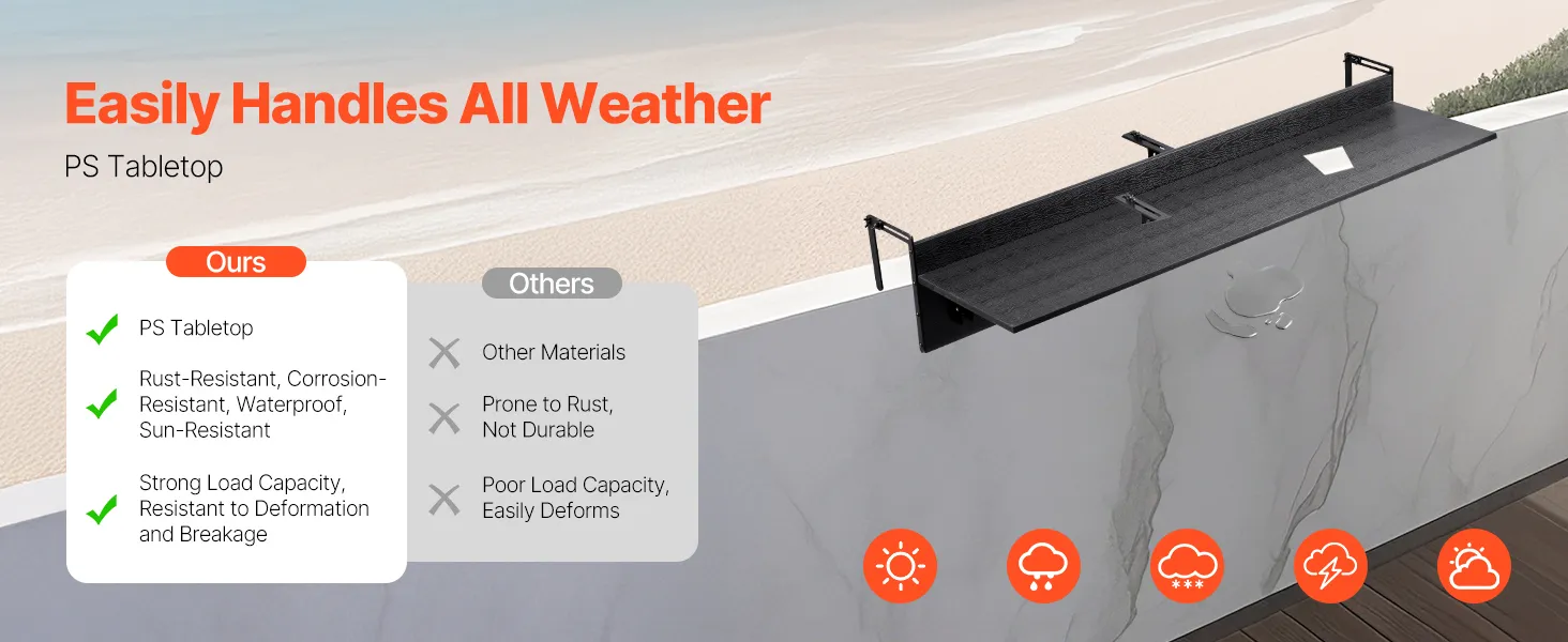 Durable & Rust-Resistant: Crafted with a PS tabletop, premium paint coating, and stainless steel brackets, this balcony railing table is built to resist rust and corrosion. It’s designed to withstand various weather conditions, ensuring reliable performance for long-term outdoor use.