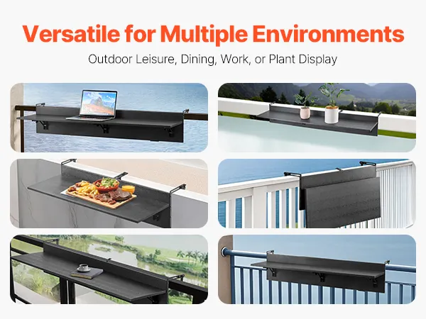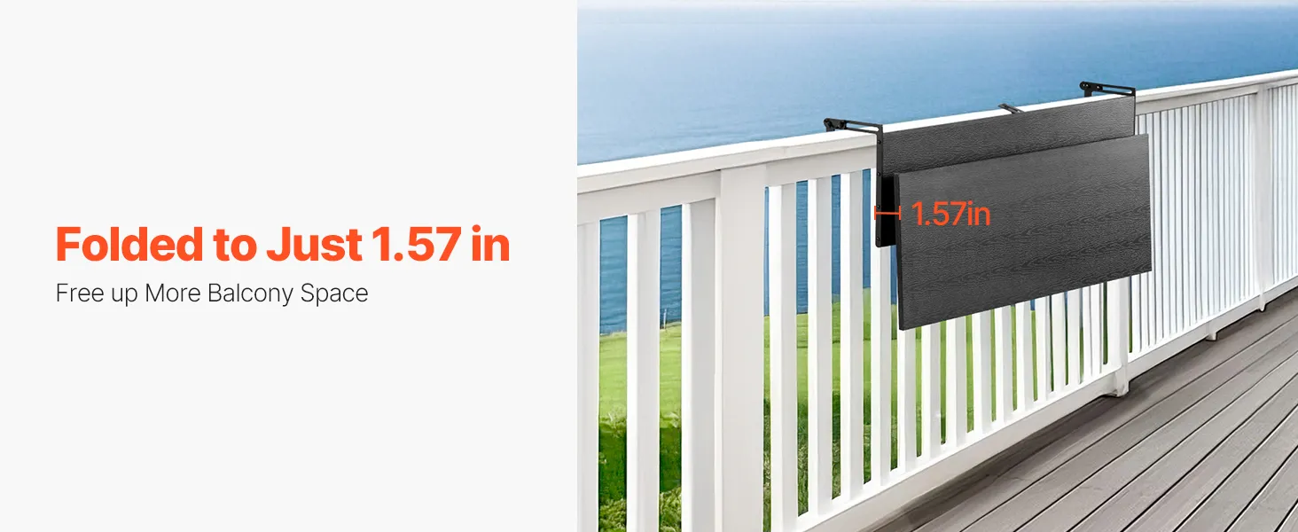 Space-Saving and Foldable: When not in use, simply press and fold the patio railing table to save precious balcony space. Its compact design ensures it doesn’t take up unnecessary room, keeping your outdoor area neat and organized.