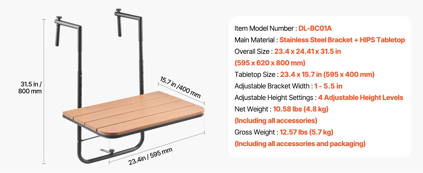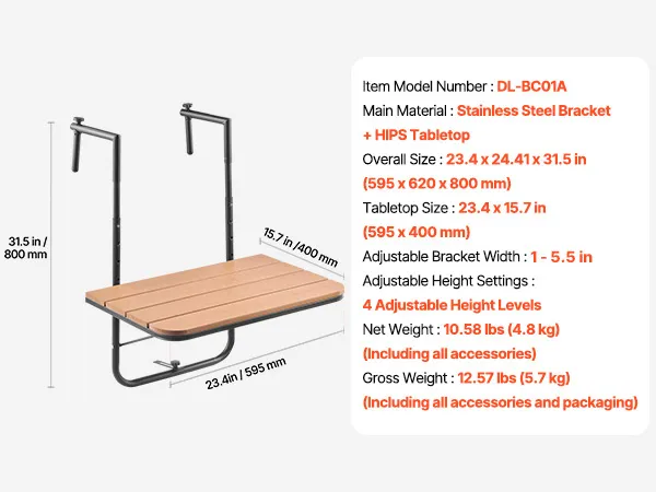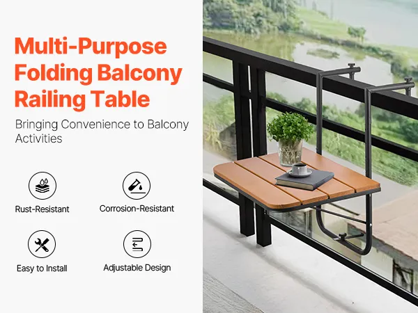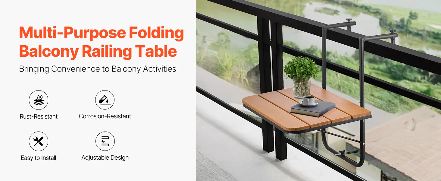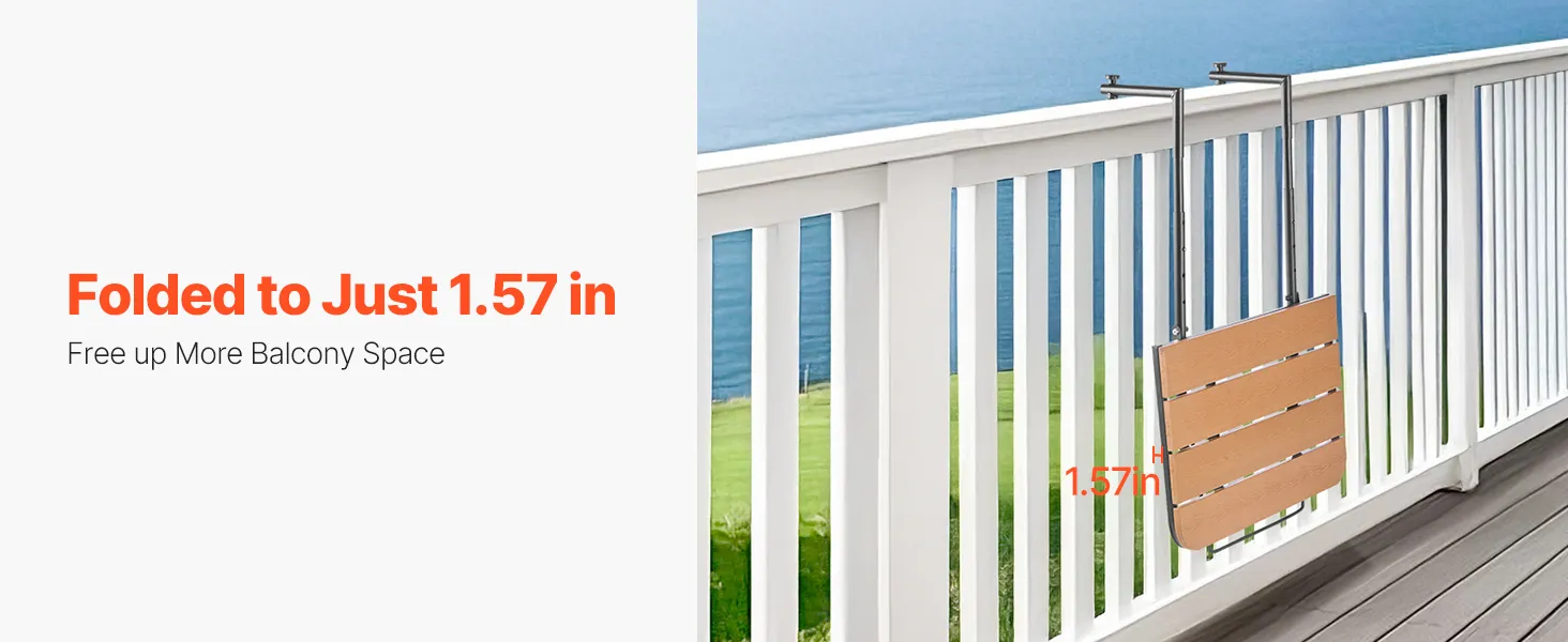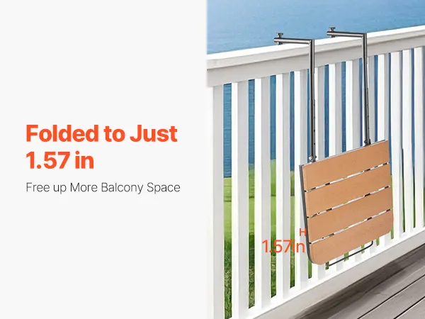 Space-Saving and Foldable: When not in use, simply press to fold the hanging balcony table and free up valuable balcony space. Its compact design ensures that it doesn't take up much room, helping to keep your outdoor area tidy and organized.