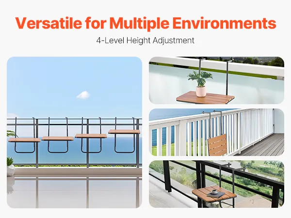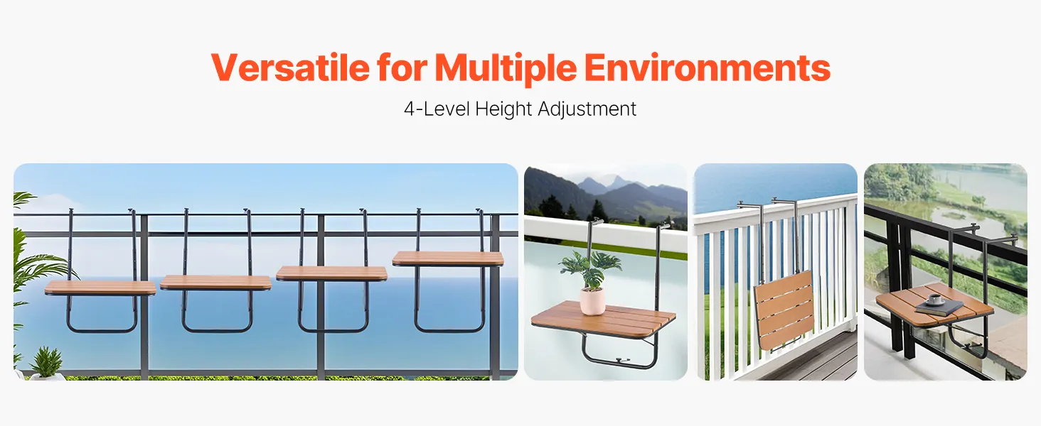 Multi-Functional and Convenient: This folding balcony table features 4 adjustable height levels, offering flexibility for various activities on your balcony. Whether you're dining, working, relaxing, enjoying the view, or displaying plants, it brings convenience and functionality to your outdoor space.