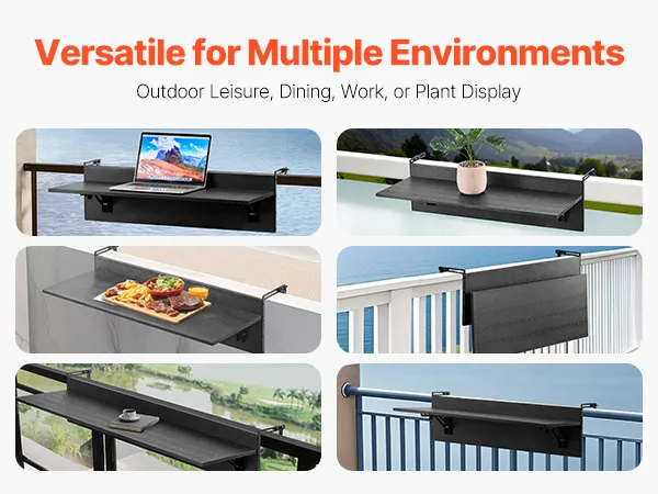 Space-Saving and Foldable: When not in use, simply press and fold the patio railing table to save precious balcony space. Its compact design ensures it doesn’t take up unnecessary room, keeping your outdoor area neat and organized.