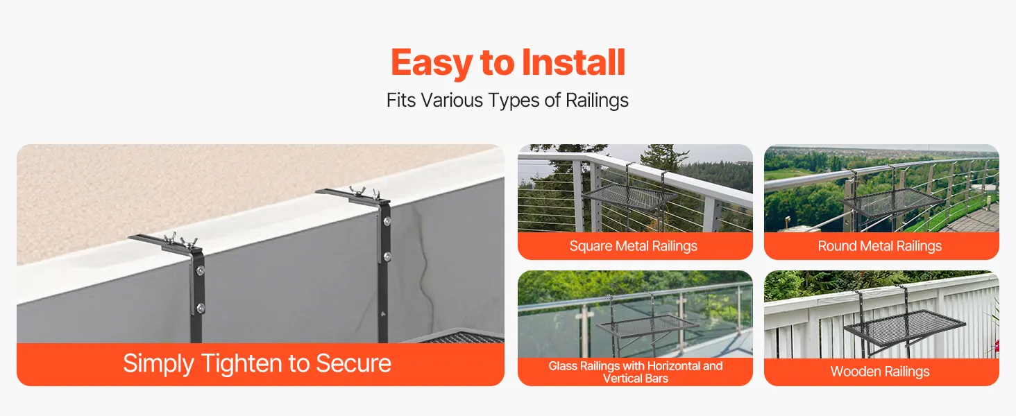 Versatile and Easy Installation: The adjustable bracket width (1-4.72 inches) makes it compatible with a wide variety of railings, including square, round, tile, or wooden designs. No need for measurements or professional installation skills – you can set it up quickly and easily on your own.