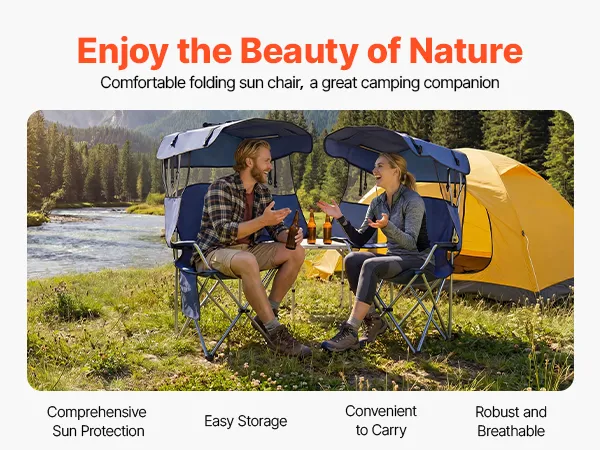 VEVOR Camping Chair with Canopy Shade, Folding Beach Chair with Canopy & Magazine Pocket, 2 Cup Holders, 330 lbs Heavy Duty Support, Carry Bags for Outdoor, Camp, Fishing, Tailgates, Deep Blue