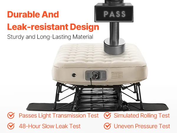 Made from PVC + peach-skin fabric, this inflatable air bed is tear-resistant, leak-proof, and built to last, providing long-term durability.