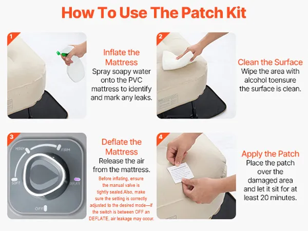 Easy Storage & Maintenance: After use, simply deflate the camping cot mattress, fold the frame, and store it in the wheeled carry case for easy transport. Includes 2 TPU repair patches (7x7cm) for quick fixes.