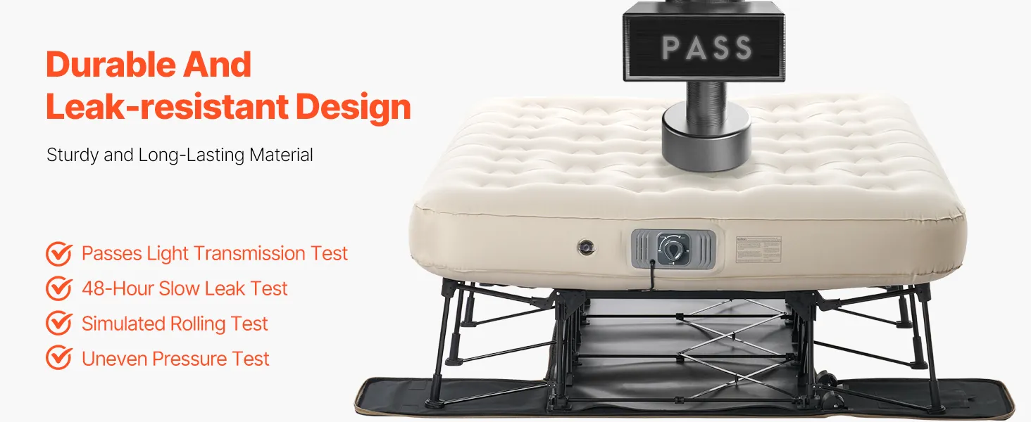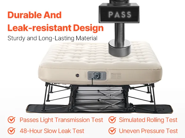 Made from PVC + peach-skin fabric, this inflatable air bed is tear-resistant, leak-proof, and built to last, providing long-term durability.