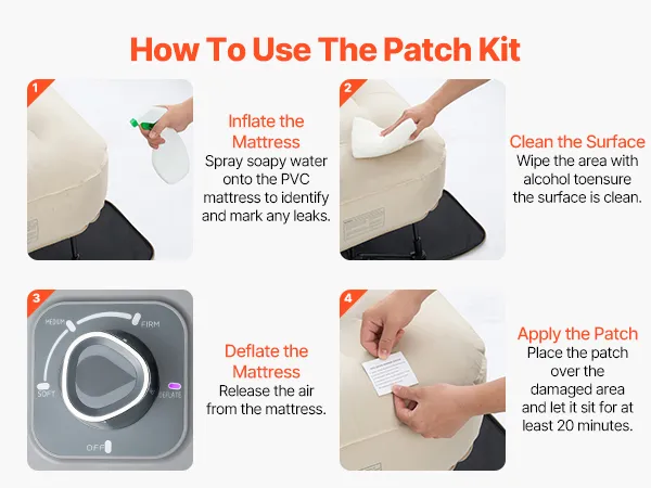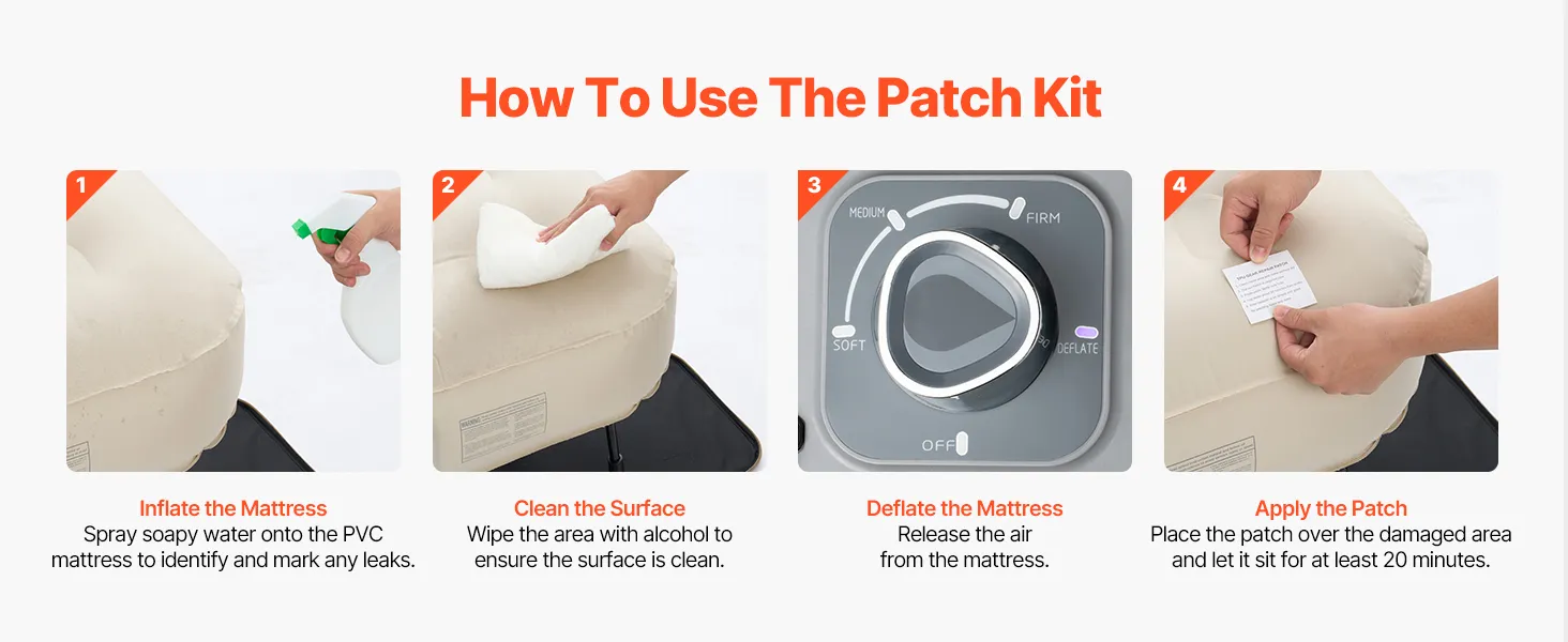 Easy Storage & Maintenance: After use, simply deflate the camping cot mattress, fold the frame, and store it in the wheeled carry case for easy transport. Includes 2 TPU repair patches (7x7cm) for quick fixes.
