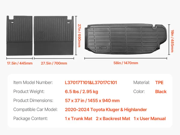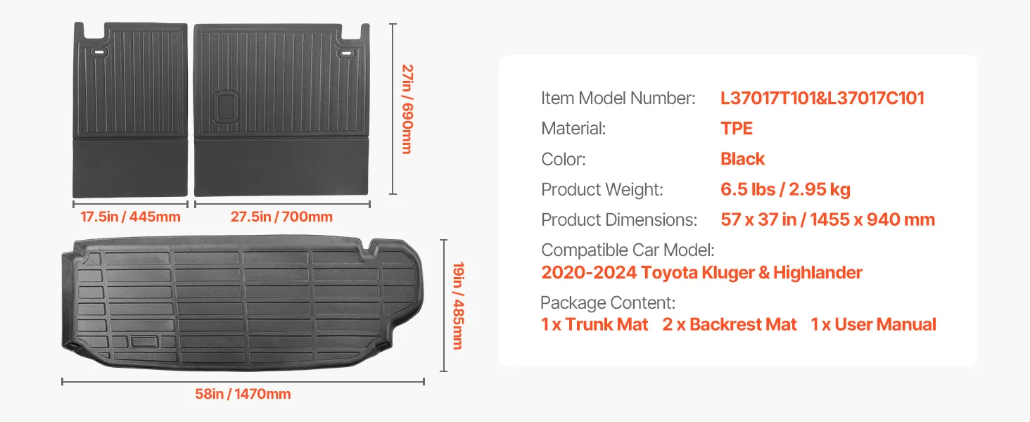 Custom Fit: Compatible with 2020-2024 Toyota Kluger & Highlander models, this cargo mat and backrest mat set uses advanced 3D technology to precisely capture the vehicle’s data, ensuring a flawless fit. Not only does the cargo linear add a little touch of style to your car, but elevates its overall interior appeal.