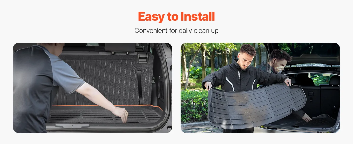 Say goodbye to complicated setups! With simple steps, you can easily install or remove the trunk mat and backrest mat, saving you time and effort while keeping your car interior neat.