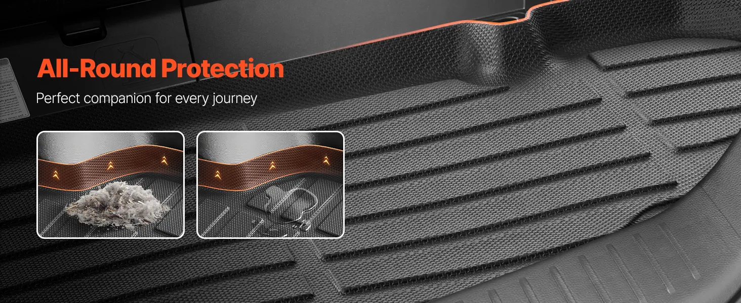 Waterproof & Durable: Crafted from all-weather TPE material, this trunk cargo mat is built to last. Our custom fit car mats are wear-resistant, waterproof, and easy to clean, offering reliable protection against spills and wear while maintaining its shape over time.