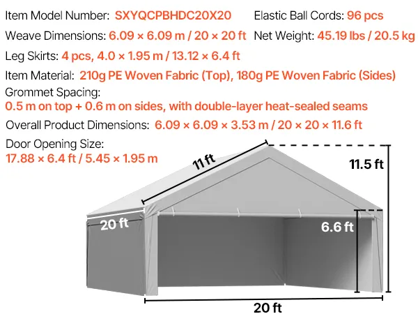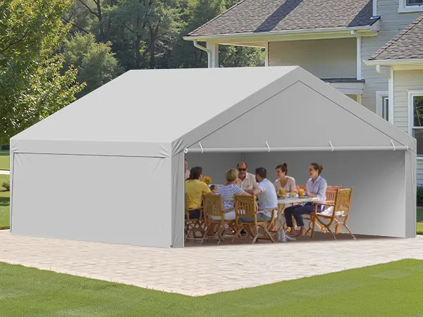Veelzijdig buitengebruik: Deze carportoverkapping is geschikt voor het afdekken van voertuigen, landbouwmachines, bouwmaterialen of als schaduwvoorziening bij buitenactiviteiten. Ideaal voor woningen, boerderijen of bouwplaatsen, biedt hij sterke, flexibele en betrouwbare bescherming.