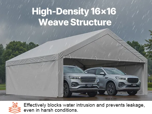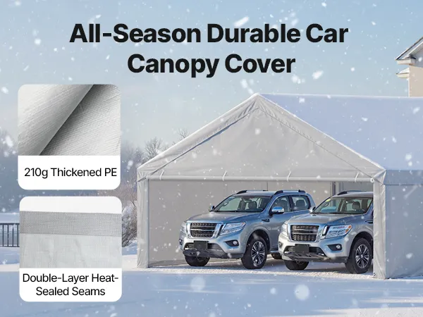 Robuuste constructie: het draagbare garagezeil is gemaakt van 210g PE-stof (180g PE-zijwanden) en heeft een 16x16 weving. Het is robuuster dan conventionele zeilen. Dubbel gesealde naden en ringen zorgen voor een strakke, veilige pasvorm en voorkomen het risico op scheuren en lekken.