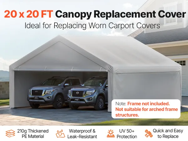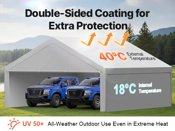 Bescherming tegen alle weersomstandigheden: De dubbelzijdige PU-coating biedt waterdichtheid en UV50+ bescherming. Deze vervangende hoes beschermt tegen hevige regenval, fel zonlicht, scheuren en verkleuring. Bescherm je auto, uitrusting of opgeslagen spullen het hele jaar door.