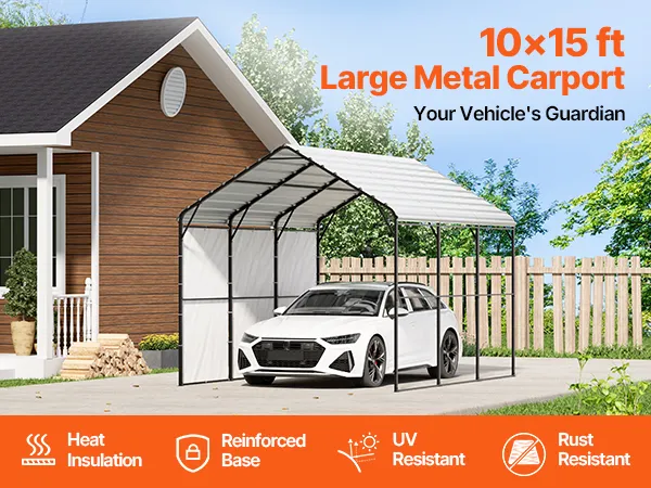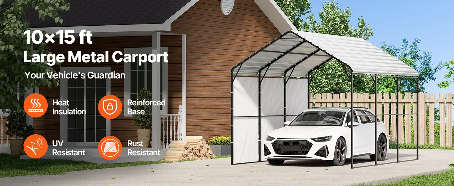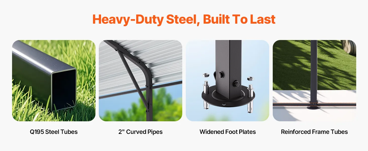 Deze carport is ontworpen voor diverse voertuigen en apparaten en biedt rondom bescherming. Het stevige Q195 stalen frame met waterdichte en roestbestendige coating is bestand tegen barre weersomstandigheden. Het zonwerende dak en de PE zijpanelen verlengen de levensduur van uw voertuig.