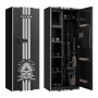 De wapenkast biedt plaats aan maximaal vier lange geweren en beschikt over een geheim compartiment voor munitie en accessoires. Daarmee voldoet hij aan de opbergbehoeften van verzamelaars en gebruikers van meerdere vuurwapens. Hij is tevens uitgerust met verstelbare beugels om wapens van verschillende lengtes te kunnen opbergen.